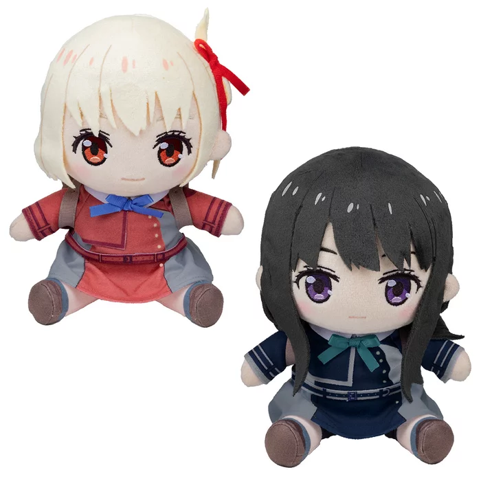 From the anime series Lycoris Recoil come adorable plushies of main characters Chisato Nishikigi and Takina Inoue! Produced by Good Smile Company, each measures 6.7″ tall in a sitting position and features cute chibi proportions, a detailed outfit, and a charming embroidered expression that shows their personality.