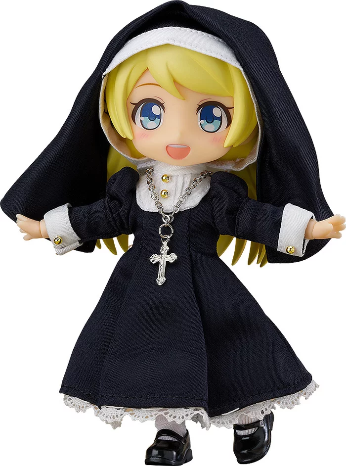 Saints be praised! Good Smile Company has released a nun outfit for Nendoroid Doll bodies! The outfit comes with a wimple, a pendant, a black dress, white tights, and magnetic-soled black pumps. Put the outfit on a Nendoroid in your collection! Better yet, grab the priest outfit set as well so that you have both a nun and a priest for some truly righteous displays!