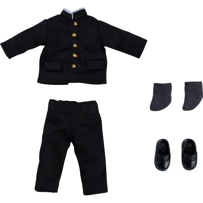 Introducing a school outfit for your Nendoroid Dolls! From Good Smile Company, the classic Japanese long-sleeved schoolboy outfit has been recreated as a fun dress-up set that includes a black top with gold buttons down the front, black pants, socks, and loafers with magnetic soles. Enjoy recreating fun school scenes with your Nendoroid Dolls!