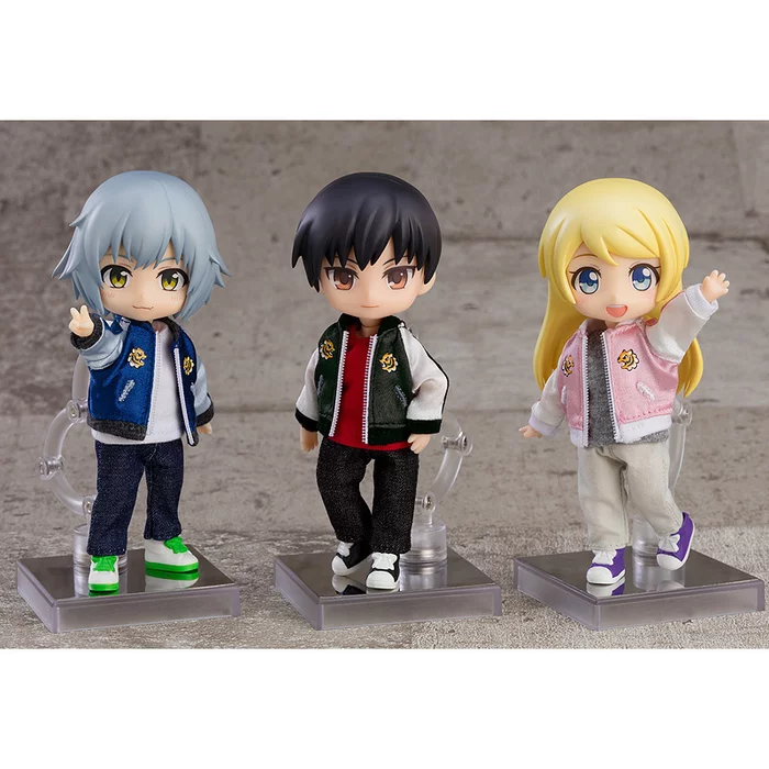 Give your Nendoroid Doll a trendy new look with these new outfit sets from Good Smile Company! Made of real fabric, the sets feature a stylish look that includes a casual shirt, pants, and shoes. But the real showstopper is the souvenir jacket (also called a sukajan) which features a three-tone look and tiger details!