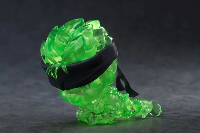 From Metal Gear Solid comes a Nendoroid of the main character of the series, the infiltration specialist Solid Snake, in a special stealth camouflage version! The rough look of his character has been preserved while still giving him the cuter appearance provided by the Nendoroid design, and now he has been made with translucent green parts to represent him staying safe in stealth mode!