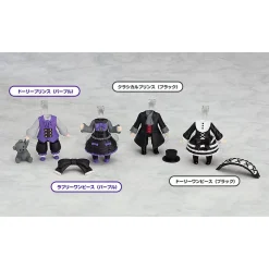 From Good Smile Company and sculpted by POLY TOYS and knead comes these Nendoroid More: Dress Up Gothic Lolita outfits for giving your favorite Nendoroids a new, adorable look! This complete box set includes all four Nendoroid bodies dressed up in goth lolita outfits fit for dark princes and princesses (black and white dress with headband, classic black coat coordinate with top hat, black and purple dress with head bow, and purple vest coordinate with dark grey teddy bear). Pop on the heads of your favorite Nendoroids and send them off to a mad tea party! Have more fun with your Nendoroids with this pack of gothic lolita outfits!