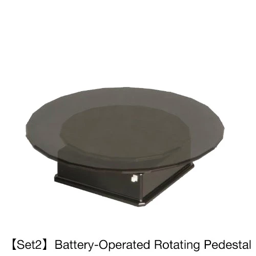 Battery-Operated Rotating Pedestal: Around and around your Nendoroid goes! This highly popular pedestal operates on batteries so as you work, read, or study you can enjoy viewing every angle of your Nendoroid. It includes two different sized platform discs: small (approx. 3.5” in diameter) and large (approx. 4.7” in diameter). Requires 1 AAA battery.