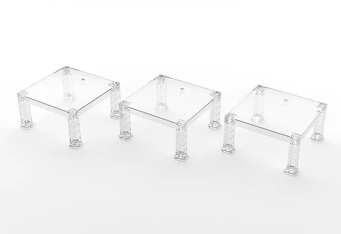 Good Smile Company is here to bring you another easy way to make an eye-catching figure display with these display stand sets! Each set includes three simple display stands with stackable support pylons so you can adjust their height, making them perfect for a wide range of figures from Nendoroids to plastic models and action figures too. Creating a tiered display has never been easier, and each stand even includes a hole for a figure support. Talk about handy!