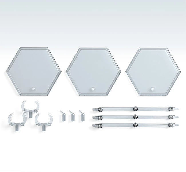 Thanks to the Nendoroid More line, you can now purchase a set of three complete Simple Stands for your figures and models! Made of transparent material, these Simple Stands blend into the background to let your figures shine! They feature hexagonal bases to rest your figures on. And an articulated straight angle support arm that measures 5 inches long protrudes from the base of each Simple Stand and connects to the back of your figure via a 3mm pin!